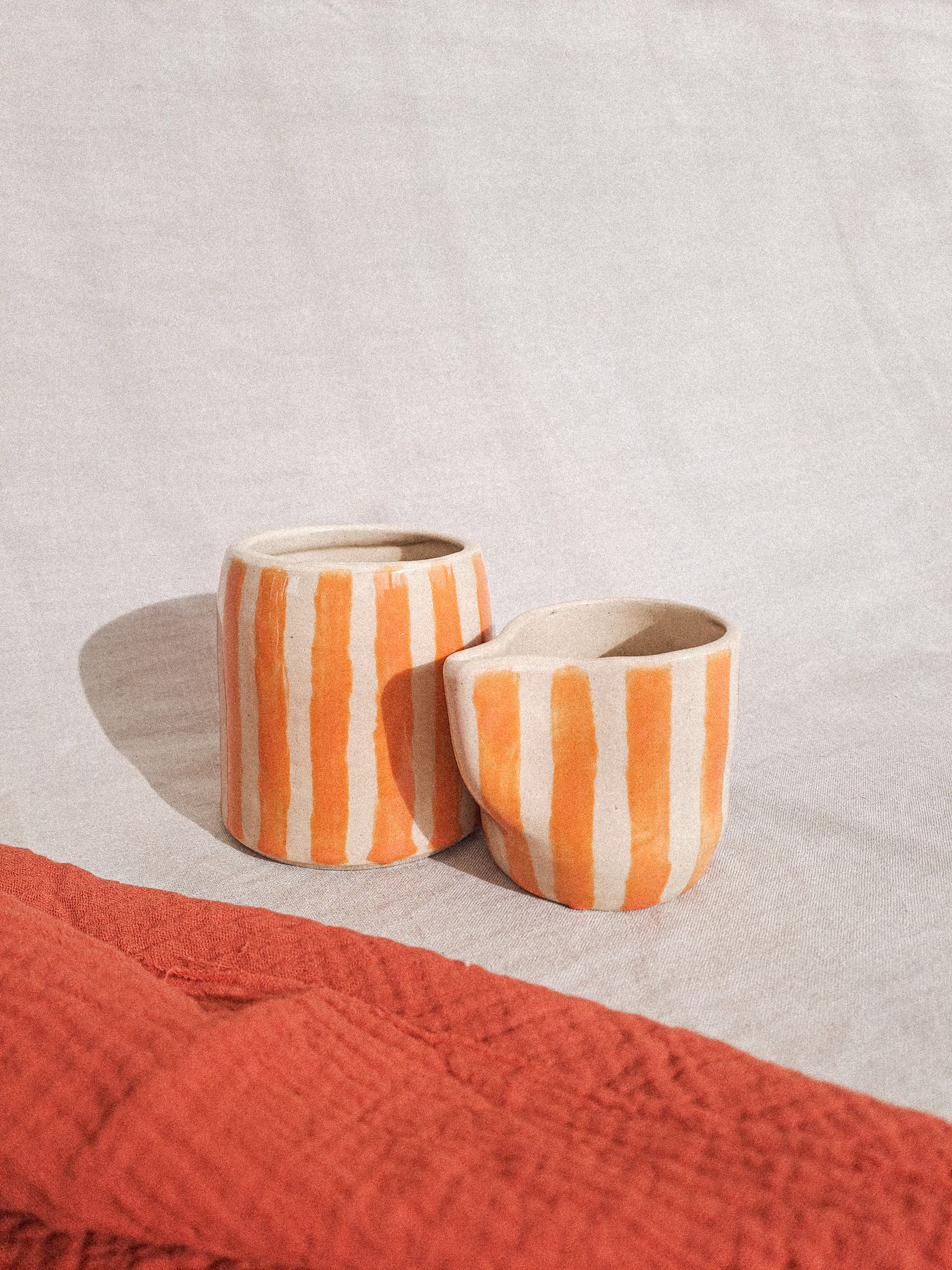 Unsere Keramik wird mit viel Liebe in unserem kleinen Töpferstudio in Hamburg von Hand aufgebaut und/oder gedreht. Der Prozess erfordert viel Konzentration und Aufmerksamkeit um ein Produkt zu entwickeln. Hinter jedem Schritt steckt viel Hingabe und Liebe zum Detail. Die Idee ist es, dass jede Tasse und jede Vase einzigartig ist und gleichzeitig zu den anderen Produkten der Kollektion passen sollte. Jedes einzelne Stück ist einzigartig und macht handgemachtes so wundervoll.